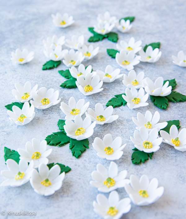 Kun metsä täyttyy valkovuokoista, on aika julistaa kesä alkaneeksi. 🌱🤍💚 Loppukevään ja alkukesän leivonnaisiin sokerimassasta tehdyt valkovuokot antavat herkkää kauneutta. Seuraa vaihe vaiheelta, miten nämä kaunokaiset syntyvät ja koristele vuokoilla kakut, piirakat tai muffinssit.