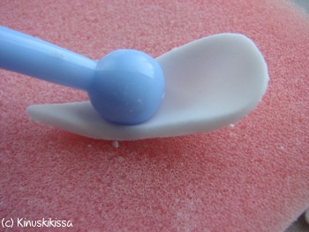 Pyöristä terälehteä muotoilusienen päällä koveraksi pallopäisellä työkalulla. Tee liike pystysuunnassa – näin terälehti venyy samalla hieman pituutta.