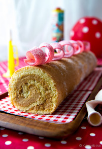 KORISTELU. Avaa karkkirulla ja taivuta se kääretortun päälle kevyeksi kierteeksi.