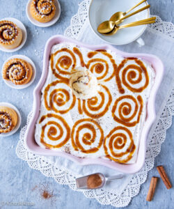 Korvapuustimaiset kierteet ovat tietenkin olennaisia, kun puhutaan tästä pian juhlapäiväänsä (4.10.) viettävästä klassikkopullasta. Ne tehdään jäätelön joukkoon kanelisiirapin avulla.
