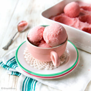 Suomea hellii nyt poikkeuksellinen helleaalto. ❤️☀️ Näillä keleillä tekee mieli oloa viilentäviä herkkuja! Kurkkasin, mitä Kinuskileipomoissa on tänä kesänä leivottu ja sieltähän löytyi juuri sopiva idea minulle! Kinuskileipomo Brookie Monster oli loihtinut vesimelonista sorbettia. Tämän reseptin innoittamana lähdin itsekin tutkailemaan sorbetin valmistuksen saloja. Tekniikoita on monia, mutta vaikeaa se ei ole. Valkuaisvaahdon lisääminen ei ole välttämätöntä, pikasorbetti syntyy ilman sitäkin.